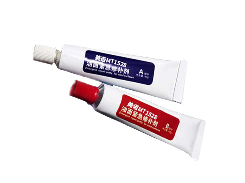灰白色,雙組份,混合后可快速固化,可帶油粘接;適于油面的修補(bǔ)(不適合銅質(zhì))